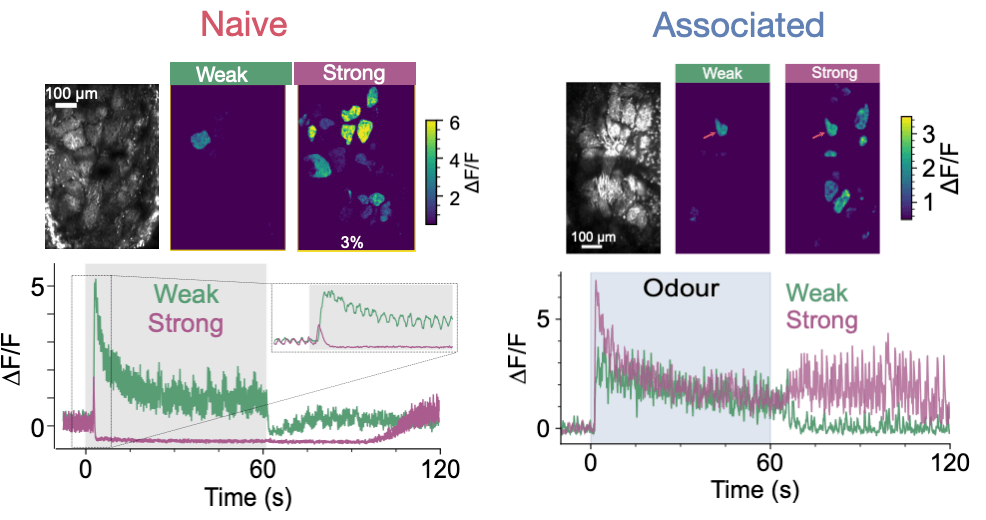 In this project we used behavioural experiments to show that when naïve to an odour mice lack perceptual constancy, perceiving high concentrations as distinct from weaker concentrations. Using 2-photon imaging of the activity of olfactory bulb circuitry we show that this perceptual shift coincides with transmission failure from olfactory receptor neurons that are most sensitive to the odour.