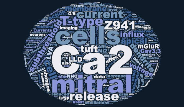This project explored the intrinsic properties of olfactory bulb output neurons. We showed that input from the olfactory nerve activates Ca2+channels located in the primary dendrites and these contribute to dendritic glutamate release. The resulting depolarisation and boosted glutamate release synchronises the activity of multiple output neurons belonging to the same glomerulus. The papers can be found here […]
